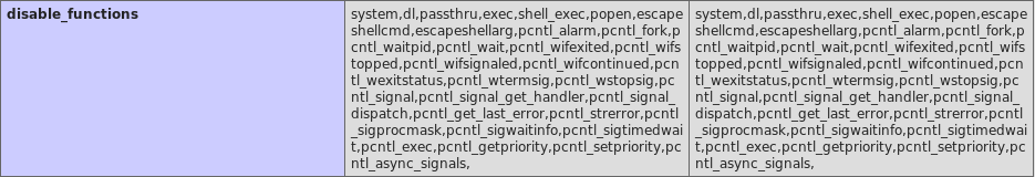 You may be thinking that just in the same way we have overwritten open_basedir configuration we can overwrite disable_functions. Well, try it, but it won't work, apparently disable_functions can only be configured in a .ini php configuration file and the changes you perform using PHP_VALUE won't be effective on this specific setting.
