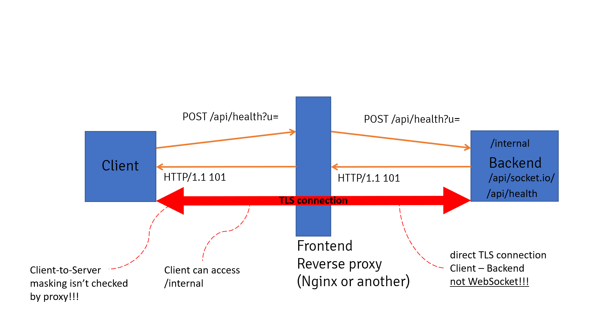 Ultimately, NGINX is tricked into believing a WebSocket connection exists between the client and the backend. In reality, no such connection exists; the health check REST API was the target. Nevertheless, the reverse proxy maintains the connection open, enabling the client to access the private REST API through it.