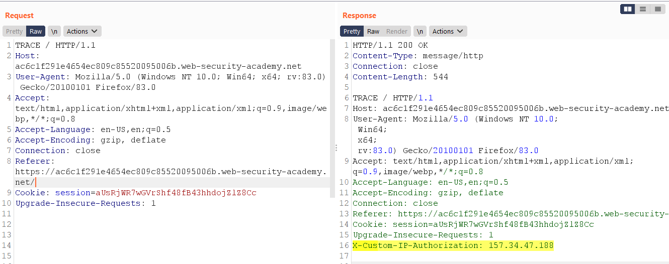 Developers might forget to disable various debugging options in the production environment. For example, the HTTP TRACE method is designed for diagnostic purposes. If enabled, the web server will respond to requests that use the TRACE method by echoing in the response the exact request that was received. This behaviour is often harmless, but occasionally leads to information disclosure, such as the name of internal authentication headers that may be appended to requests by reverse proxies.![]()